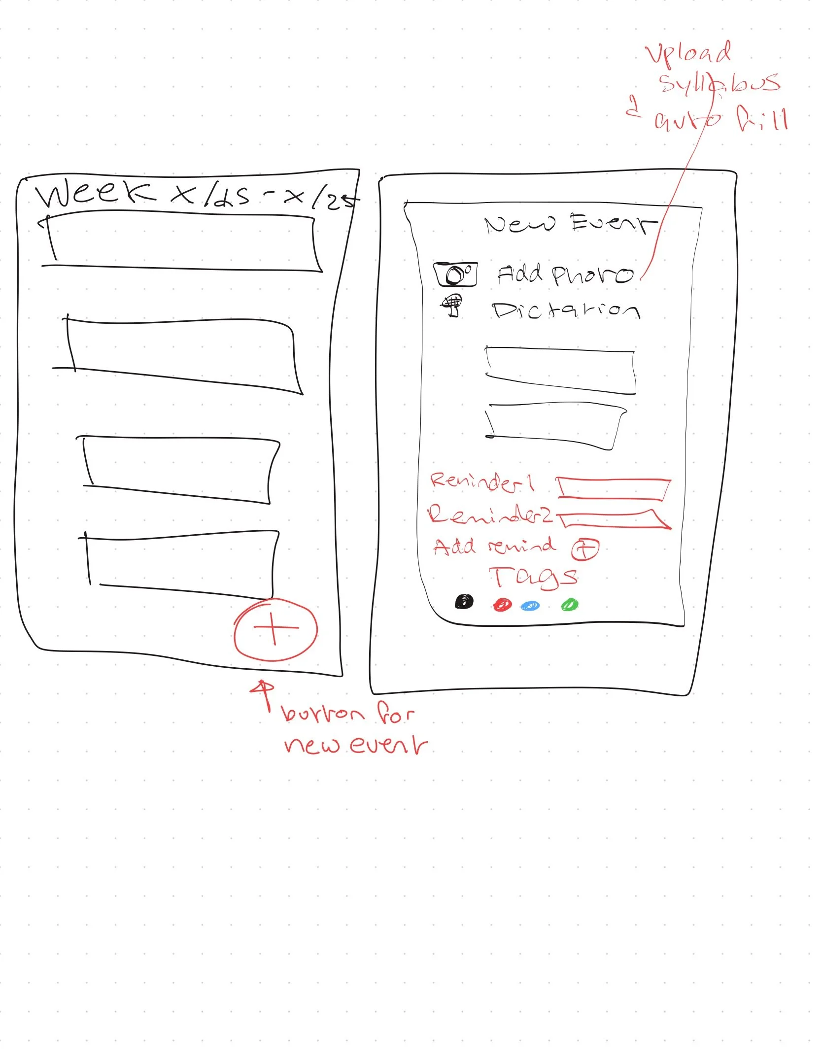 To address this, I developed NUDGE, a streamlined calendar app centered on simplicity, ease of use, and multi-choice functionality. I created multiple personas to ensure the app could serve a broader range of users while still feeling focused and minimal. From there, I mapped user flow diagrams, built wireframe structures, and developed high-fidelity prototypes that prioritized clarity over decoration. The interface was intentionally bare-bones, removing unnecessary graphical elements that could distract from viewing the schedule. I also integrated a dual-notification ping system that alerts users both when to begin an assignment, and when it is due, directly responding to user feedback about accountability and time awareness.