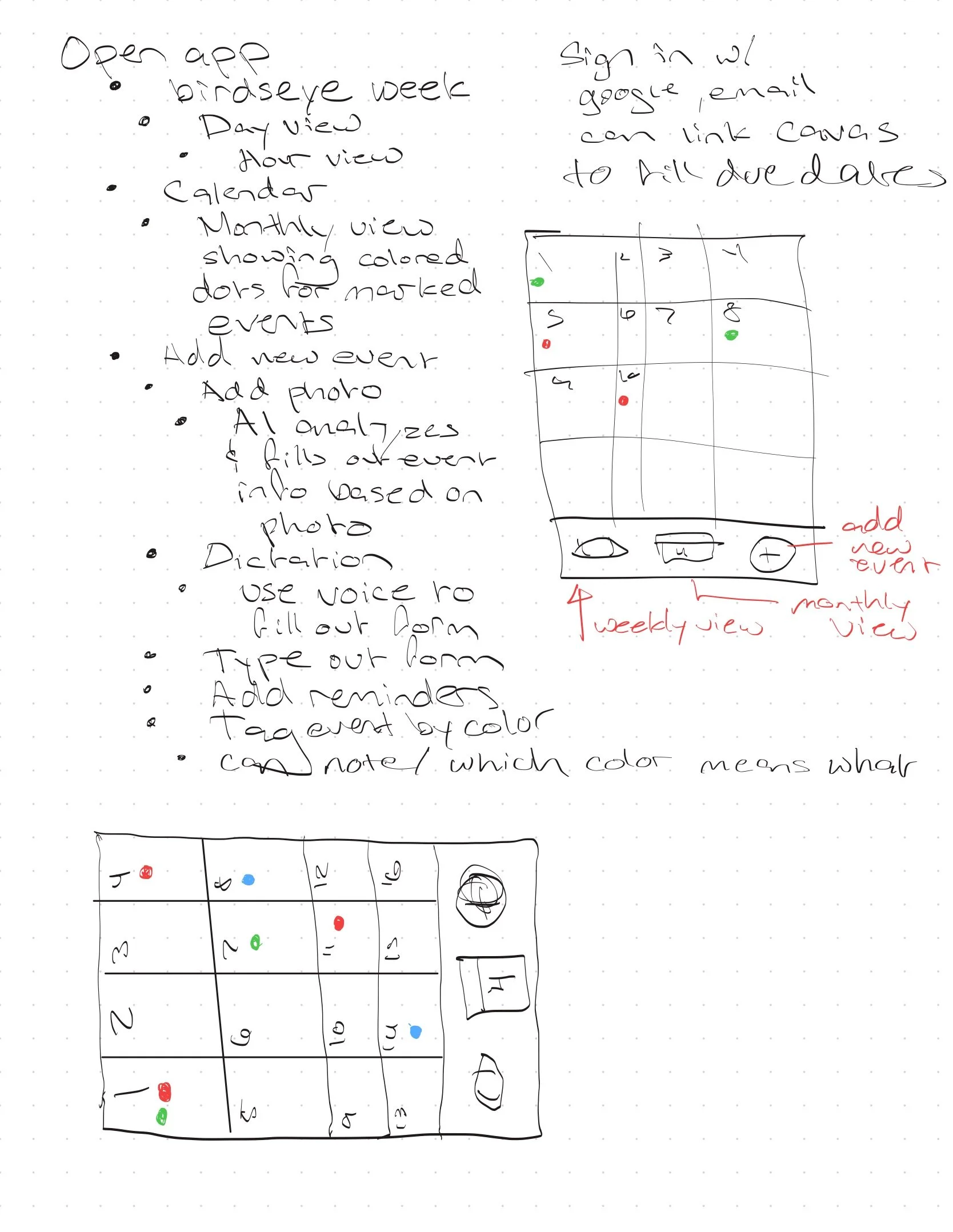 For this project, I was tasked with designing a calendar app from the ground up that addressed real user frustrations with current digital planners. Through a series of multi-stage interviews, I identified a key problem: Users need a way to see their week from a bird’s-eye view while also having multiple, low-effort ways to input tasks beyond typing everything manually. Many participants expressed that having to type every entry made them feel unmotivated and less likely to keep their calendar updated, which ultimately impacted productivity, organization, and their sanity. This insight shaped the core challenge: how might I design a calendar experience that feels simple, intuitive, and motivating to use daily?